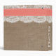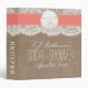 Ce classeur de la carte de la douche nuptiale de plage de sable de corail est parfait pour n'importe quelle future mariée ! Le design est composé d'un bel arrière - plan rustique effet burlap avec une coupe en dentelle blanche vintage romantique finie avec un étonnant dollar de sable sur un ruban de corail. Ce classeur peut être personnalisé pour votre occasion spéciale et serait parfait pour n'importe quel mariage de plage, douche nuptiale, fête de fiançailles, fête d'anniversaire et bien plus encore. *Veuillez noter que Zazzle ne vend que des articles imprimés afin que ce produit n'ait pas de véritables matériaux de burlap, dentelle, dollar de sable ou ruban.