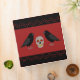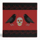 Ce classeur de recettes impressionnant présente une image graphique d'un crâne aux yeux rouges et aux dents jaunes recouvertes de fissures. Le crâne déplaisant a un grand corbeau debout de chaque côté comme un gardien. Les corbeaux sont noirs avec des pattes grises et des griffes. Ils ont aussi des yeux noirs beady. Il y a du texte personnalisé pour que vous puissiez personnaliser votre classeur de recettes.