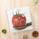 Tomate simple se reposant dans une vieille cuillère en bois sur la couverture et l'arrière - plan des cuillères en bois dessus de retour.