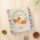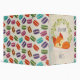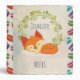 Classeur personnalisé avec un rectangle couleur crème aux formes géométriques peu esthétiques. En haut, un dessin animé représentant un mignon renard orange dormant tranquillement. Un feuille vert courut derrière. L'arrière - plan est un motif de macaron coloré avec de petits pois.