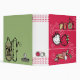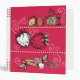 Fruits redimensionnés et légèrement rétro style, légumes, fromage et recette de vin classeur carnet livre de cuisine. Rouge néon gai sur l'avant avec des dessins esquissés, des lignes pointillées et des tourbillons. Le dos est vert avec une bouteille d'huile d'olive et la canette. Super mignon classeur pour recueillir vos plats et desserts préférés.