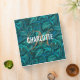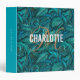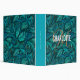 Classeur rétro 3 anneau avec un monogramme or et un nom blanc sur un arrière - plan en faux cuir à outils turquoise. Personnalisez avec l'initiale et le nom sur le devant et votre texte sur la colonne vertébrale.