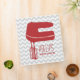 Un classeur de recette comportant une silhouette rouge d'un mélangeur de main sur l'avant. Personnalisez avec votre nom. L'arrière - plan est gris sur le chevron gris. Personnalisez le texte sur l'épine.