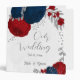 Fleurs romantiques rouge foncé & bleu marine avec classeur d'album photo mariage feuille en argent. Les détails de la parties scintillant sont simulés.