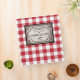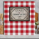Une charmante cuisine rustique au décor rustique avec un chevalet de buffle rouge et blanc classique et une étiquette personnalisée.