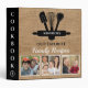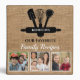 Personalized recipe book binder to keep your favorite family recipes . The rustic burlap look texture background with 3 photo collage and baking utensils makes the cookbook binder a keepsake holiday gift for family.