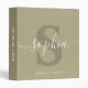 Classeur Sage Green Moderne Monogramme Nom Initiales Script
