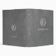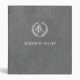 Organisateur d'entreprise de salon de coiffure ou classeur de clients avec logo de ciseaux métallisés argentés et écriture de coiffeur sur un fond aspect cuir gris foncé