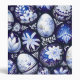 Decorative Easter eggs with elegant floral motifs in rich blue and white tones.