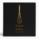 Un classeur de recettes élégant avec un fouet doré chic sur un fond noir stylisé avec votre nom et titre personnalisés dans une typographie moderne en or. Conçu par Thisisnotme©