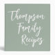 Script personnalisé Recettes familiales modernes 3 Classeur à anneau en Dusty Sage Vert