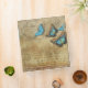 Autocollant carré vintage, avec un arrière - plan d'or foncé, script antique, théière, et délicats papillons bleus. Ajoutez du style à votre Home Office.