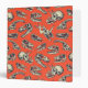 Ce classeur à 3 anneaux présente des crânes de dinosaures illustrés à la main en bleu marine et crème sur un arrière - plan rouge-orange vif.