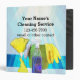 Personnalisez ce produit commercial coloré couleur pleine couleur avec le nom et les détails de votre entreprise de nettoyage ou de nettoyage. Doté d'aqua et de rayons bleu vif d'arrière - plan léger avec un duster en plume jaune gaillé, un seau vert avec chiffon et une solution de pulvérisation bleue.
