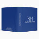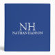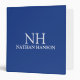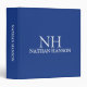 Classeur de présentation moderne avec un design bleu simple et minimaliste avec votre monogramme dans une police en gras ainsi que votre nom sur la couverture. Le dos contient vos coordonnées.