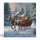 Père Noël conduisant un traîneau à cheval pour livrer des cadeaux de Noël dans une petite ville