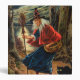 Un classeur vintage fantastique de Halloween comportant une sorcière marchant avec son chat et hibou par une nuit éclairée par la lune.