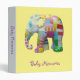 Un dossier ou un dossier a conçu pour la mère d'un nouveau bébé pour garder des photos de bébé ou des souvenirs et des évènements mémorables de bébé dedans. Des caractéristiques de conception ce mignonnes une conception d'éléphant de patchwork de jouet et ont pu être employées pour un bébé ou un bébé. Le texte est personnalisable pour inclure le nom du bébé et l'arrière - plan est également personnalisable.