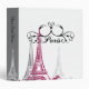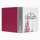 Classeur avec du vin coloré de retour. épine grise et avant blanc. Tour Eiffel coloré par vin aussi bien que Tour Eiffel de milieu et de lumière sont au fond de l'avant. Un gris un est au fond de l'épine. Une conception de tourbillonnement avec le mot "Paris" juste au-dessus du milieu de l'avant. Texte personnalisable sur l'épine.