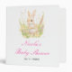 Pretty baby shower photo album with an adorable rabbit and pink and yellow flowers. Perfect for a spring or summer baby shower. The words can be changed to suit your own details or requirements