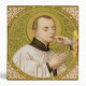 Si vous préférez personnaliser le panneau arrière ou le laisser entièrement vide, il suffit de supprimer l'image du saint présenté pour révéler la couleur solide en dessous. + Si les jeunes maltraités ont besoin d'un défenseur céleste, ils n'ont pas besoin de regarder plus loin que St. Stanislaus Kostka. À ne pas confondre avec son homonyme Saint Stanislaus Szczepanowsky de Cracovie (1030-1079), St. Stanislaus Kostka (1550-1568) était un jeune noble polonais qui a été brutalisé à son pensionnat jésuite à Vienne par son propre frère Paul qui a trouvé la ferveur religieuse et la personnalité aimable de la jeune soeur. Ayant fui l'école et contre la volonté de sa famille, il rejoint la Société de Jésus (Jésuites) en 1567. Pas 10 mois plus tard, il mourut d'une fièvre lors de la fête de l'Assomption à l'âge tendre de 17 ans dans, comme le dit le dicton, l'odeur de sainteté. + Fête : 13 novembre + Crédit d'image (SNV 25) : Image antique de St. Stanislaus Kostka d'une empreinte dévotionnelle de la fin du 19ème siècle en chromoxylographie publiée par St. Norbertus Verlag, Vienne, Autriche, de la collection de l'architecte d'éphémère religieux.