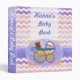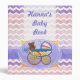 Cute Baby Carriage Pink Chevron Baby Book par ITD Colours Galore présente notre motif unique couleur bonbon rose et blanc zig zag avec notre texture signature dans l'arrière - plan avec une bande texturée violet et pièce centrale décorative avec un mignon bébé pram vintage tenant un ours en peluche. Sur le dos, le motif chevron continue avec une bande violette qui a un motif de mignons jouets de bébé qui court à travers elle. Gardez la trace de tous les premiers de votre bébé, en commençant par votre chevron rose et baby shower puant.