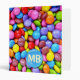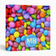 Beaucoup de chocolat dragéifié divers de couleur différente. Jaune, rose, rouge, bleu, vert, pourpre et brun. Changez le mb en vos propres initiales, en monogramme ou écrivez n'importe quel nom que vous choisissez.