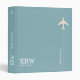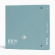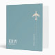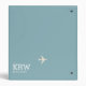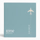 Un classeur bleu clair simple et moderne avec l'image graphique d'un avion blanc, votre nom et vos initiales... et un sujet de voyage spécial.