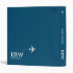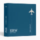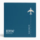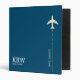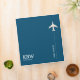 Un classeur bleu simple et moderne avec l'image graphique d'un avion blanc, votre nom et vos initiales et sujet de voyage spécial
