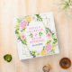 This beautiful and elegant wedding binder features watercolor pink, yellow and white flowers with foliage on a gold geometric frame. The text combines handwritten script and serif fonts for a stylish and modern look. This is perfect as a party planner, photo album or guest book.