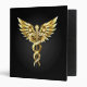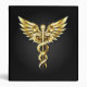 Symboles Caduceus polygonaux or sur arrière - plan noir isolé. Basse poly symbole de la médecine.