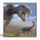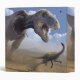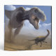 OEuvre d'un Tyrannosaurus rex dinosaure à la recherche d'un dinosaure Ornithomimus. T. rex était l'un des plus grands dinosaures carnivores. Il mesurait environ 6 mètres et pesait environ 7 tonnes. T. rex a vécu en Amérique du Nord et en Asie à la fin du Crétacé, il y a 85 à 65 millions d'années. La tête est fortement construite et a les dents pointues d'un prédateur. On pense que T. rex a récupéré et chassé pour se nourrir. Le dinosaure Ornithomimus mesurait environ 6 mètres de long et 2 mètres de haut. I
