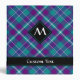 Design écossais vert mer, violet et bleu. Motif sans couture. Texte et monogramme personnalisés.