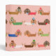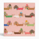 Teckels sur le rose, une conception adorable de chien à la laquelle les amoureux de les chiens, particulièrement amants de teckel, trouveront trop mignon pour résister ! Teckels de caractéristiques dans des chandails de brun chocolat, de vert, de bleu, de corail, de rose, et de blanc, quelques verres de port d'oeil, certains avec des arcs ou même casquettes supérieurs ! Cette conception mignonne de teckel est disponible sur des sacs, des coussins, des miroirs compacts, des montres, des mousepads, des poufs de coussin, des cas de l'électronique, des portefeuilles, des carnets, des porte - blocs, des bavoirs, des tétines, des cravates, et beaucoup plus !