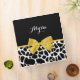 Une girafe noire et blanche à la mode imprime un classeur de 2'' avec un ruban jaune doré ceint d'un arc chic. Personnalisez ce design poster de animal élégant en ajoutant votre nom. Image imprimée plate, pas l'arc réel.