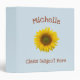 Joli Sunflower 3 anneau classeur, avec un arrière - plan bleu pâle. Avec des couleurs jaunes et des lettres brun clair, vous pouvez le personnaliser avec votre propre texte et même étiquette pour un sujet scolaire. Parfait pour votre retour à l'école.