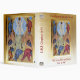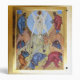 Icône orthodoxe orientale de la Transfiguration peinte dans le style byzantin traditionnel. Réplique d'après le chef-d'oeuvre russe de Théophane le Grec en 1408. Peint à la température de l'oeuf et doré à la feuille d'or de 24k sur un panneau en bois avec de la kovcheg (aussi connu sous le nom d'arche - un renfoncement à la surface).