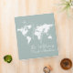 Arrière - plan bleu clair avec une carte blanche du monde, et votre nom de famille dans un style de police script avec des mots personnalisés 'Voyage Aventures'... pour collecter des photos et des souvenirs de vos voyages à travers le monde