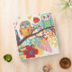 Classeur mignon avec trois hiboux sur une branche. Couleurs lumineuses d'or, du rouge et du bleu de turquoise