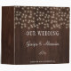 Classeur de mariage texte modifiable avec des lumières scintillantes rustiques sur arrière - plan de grange brun foncé. Insérez vos noms, vos initiales et votre adresse ! Idéal pour votre automne de nuit | hiver | pays rustique chic | mariage à thème jardin extérieur.
