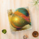 Une photo d'un ornement de vacances brillant et brillant pour décorer votre arbre de Noël. Cette boule festive, en forme de montgolfière, est colorée d'un vert saisonnier aux rayures orange pâle et joyeuses et entourée d'étoiles et de cercles dorés. Personnalisez la colonne vertébrale avec votre propre texte si vous le souhaitez.