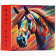 Une tête de cheval étonnante dans de nombreuses couleurs vives, avec un arrière - plan rayé coloré, crée un beau classeur pop art pour les amateurs de cheval. La colonne vertébrale est rouge-orange vif, pour vous de personnaliser.