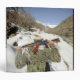 Une garde de Mujahadeen marche avec des militaires américains en relief.