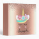 Classeur Unicorne personnalisée face Rose or