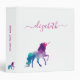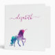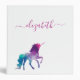 Une licorne d'imaginaire turquoise, violette et un peu rose pour une fille ado. Fond blanc. Personnalisez et ajoutez votre nom sur le devant. Le nom est écrit avec un grand script de style moderne écrit à la main. Lettres violettes. Pour que les swashes ne suppriment que le nom de l'échantillon, laissez les espaces ou émoticônes devant et après le nom. Ajoutez votre propre texte sur la colonne vertébrale.