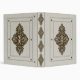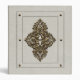 Conception vintage de classeur de cuir blanc, avec les ornements floraux en bronze.