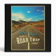 Explorez, découvrez, faites un voyage sur la route aujourd'hui! Ce magnifique design vintage amusant comprend une route asphaltée aux États-Unis, avec des montagnes et du ciel bleu derrière. Conduisez votre voiture et voyez ce que vous pouvez voir!