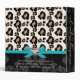 Un album photos doux et élégant de wedding planner, d'organisateur ou avec un noir à la mode, crème, motif d'impression de tache de léopard de brun et d'or et un diamant en forme de coeur lumineux de fausse pierre de conception et de faux de regard de ruban bleu d'aqua bling. Svp, la note, aucuns embellissements tridimensionnels ont été ajoutées à cet album. La conception sera imprimée à plat et regard suivant les indications de l'image de prévision de produit. L'avant, l'épine et le dos de ce classeur peuvent être customisés avec vos propres mots. © Chrissy H. Studios, LLC d'illustration. Tous droits réservés.