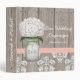 Le classeur décoré d'un monogramme de pot de maçon de style assez rustique avec une fleur blanche d'hortensia et une barrière et une damassé en bois d'antiquité modèlent l'arrière - plan de dentelle et le ruban piqué de corail de pêche et de lumière. Cet organisateur de mariage peut être personnalisé avec les initiales et le monogramme des jeunes mariés sur le pot de maçon et être customisé avec les noms des couples heureux sur l'épine de l'organisateur. Perfectionnez pour un country, une ferme, une réception en plein air ou un mariage de style de basse-cour. Conçu par Chrissy H. Studios, LLC. Tous droits réservés.