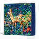 Classeur dans une tapisserie de William Morris design de cerf dans un cadre de forêt d'imaginaires - cerf tan moucheté dans un arrière - plan luxuriant, bleu et vert profond de feuilles et de fleurs, accentué de tulipes rouges